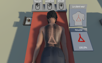 Chaque client arrive avec une forme précise à réaliser dans son dos. À vous de placer le scotch avec soin pour reproduire le motif demandé, puis d’arracher les poils d’un seul geste. Plus votre résultat se rapproche de la forme souhaitée, meilleure sera la note laissée par le client.